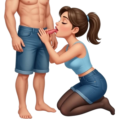 Femme à genoux qui fait une fellation homme emoji