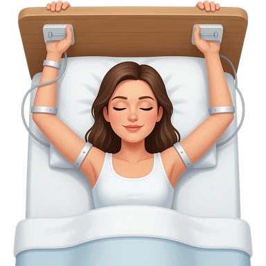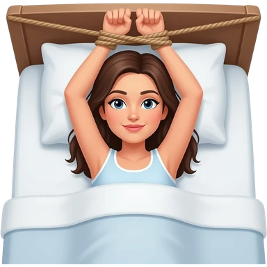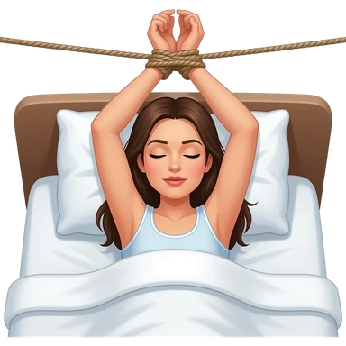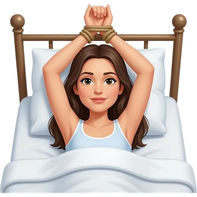Femme allongée sur le dos dans un lit avec les bras attaché à la tête de lit emoji