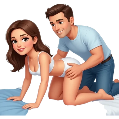 fille à quatre pattes en sous-vêtements les jambes écartées avec un homme en slip derrière elle qui tiens la gorge de la femme avec une main sur la hanche de la femme et la baise emoji
