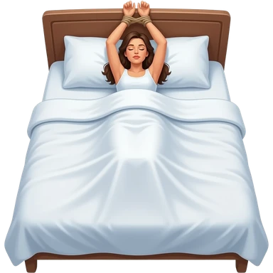 Femme allongée sur le dos dans un grand li t avec les bras attaché à la tête de lit emoji