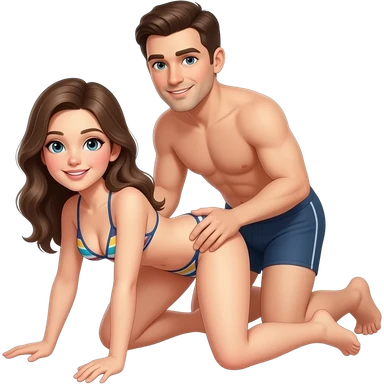 fille à quatre pattes en bikini les jambes écartées avec un homme en slip derrière elle qui tiens le coup de la femme avec une main sur la hanche de la femme emoji