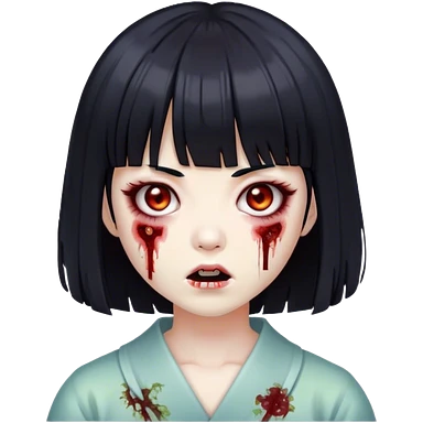 zombie japonese girl with black hair and bangs 🧟♀️ emoji