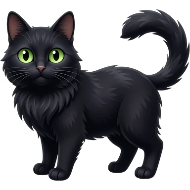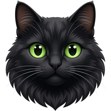 a black long haired cat with green eyes emoji