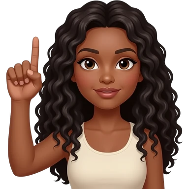A brown woman with dark long curly hair and big pouting lips Holding her hand up as if holding an invisible cylinder emoji