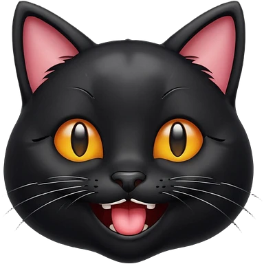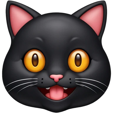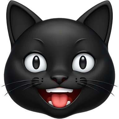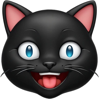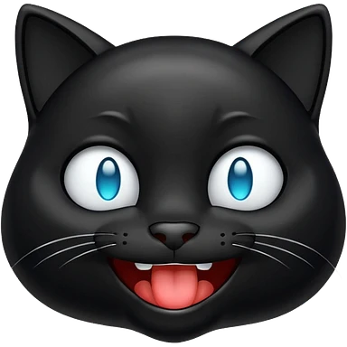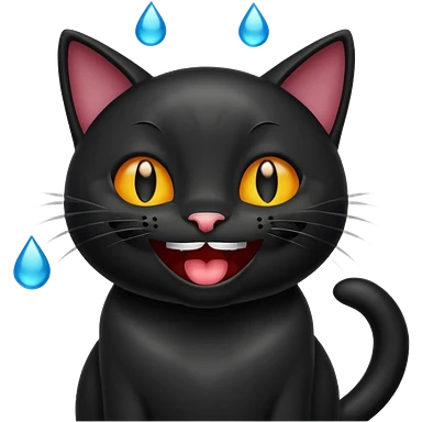 Un emoji de una cara de gato negro riendo a carcajadas, con lágrimas azules brotando de sus ojos cerrados y una boca abierta y sonriente, en el estilo de diseño de emoji clásico. emoji