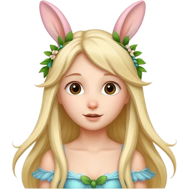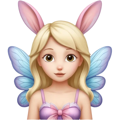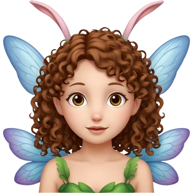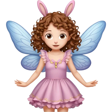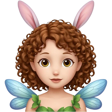 a flying fairy with wings and with bunny ears and brown curly hairs emoji