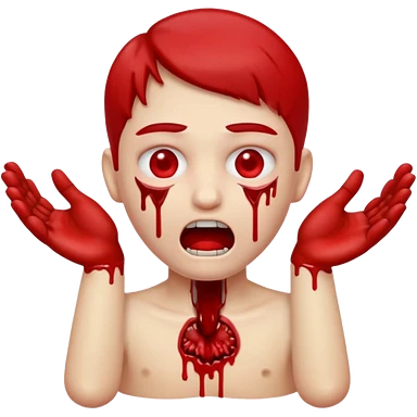 a emoji head choking itself with both its hands around its neck very graphic with alot of gore emoji