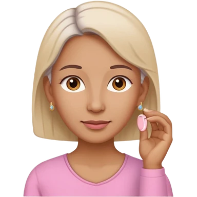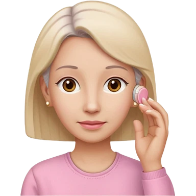 Memoji woman baju pink muka,telinga warna cream, telinga pakai alat dengar warna beinge emoji