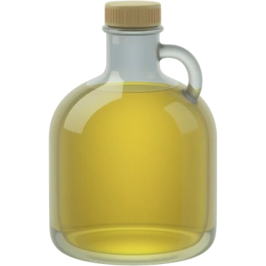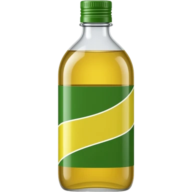 Transparent cooking oil bottle in Natura Argentina style, golden oil, minimalist green and yellow label, green cap, realistic emoji