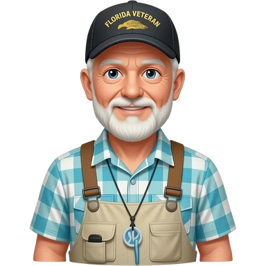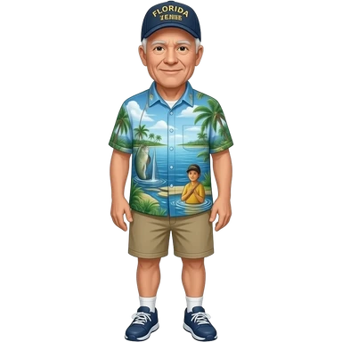 Old Florida veteran with cap fishing shirt and shorts wearing sanae emoji