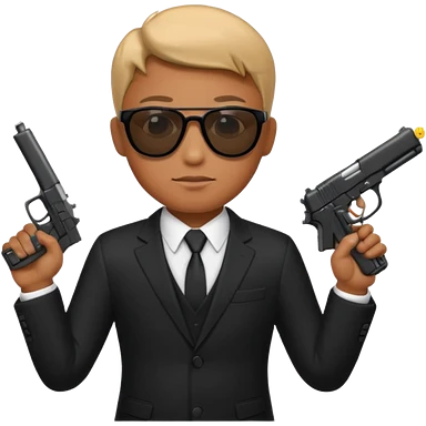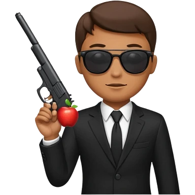 Apple emoji style, black-suited special agent wearing sunglasses, holding a gun emoji