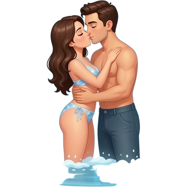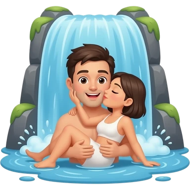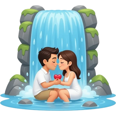 Waterfall with a couple making love underneath emoji