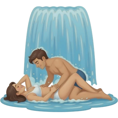 Waterfall with a couple having sex underneath emoji