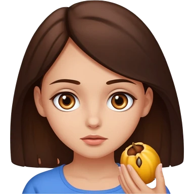 Fais moi une fille brune avec les yeux marrons, qui ce mort un doigt avec un regard coquin. emoji