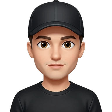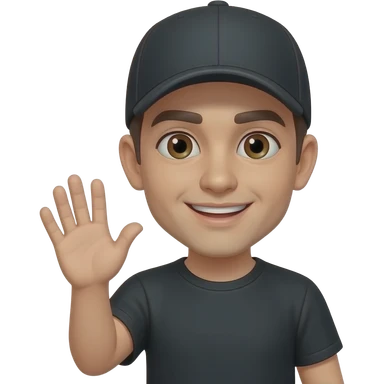 Brown eyes, rock cap, black teeshirt, saying hi emoji