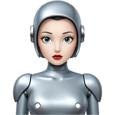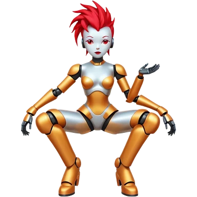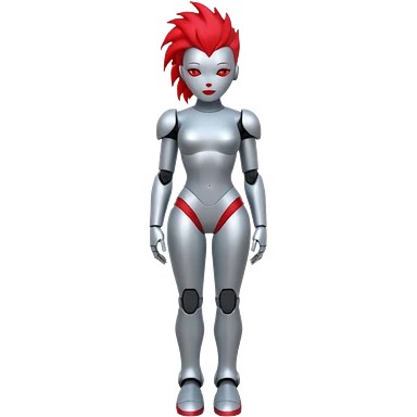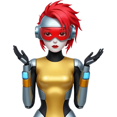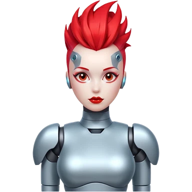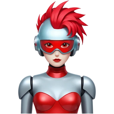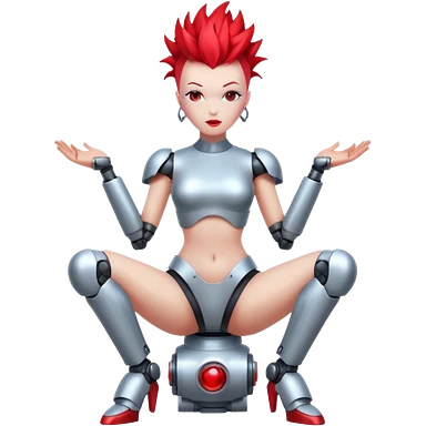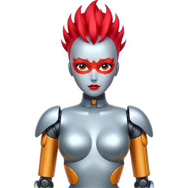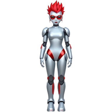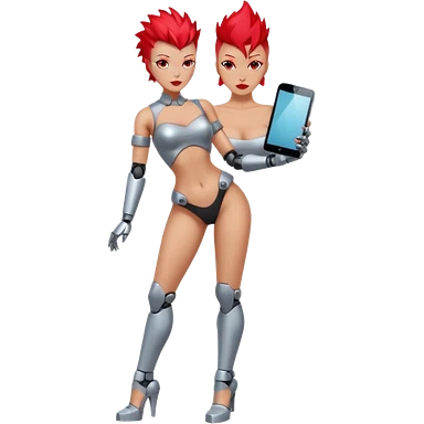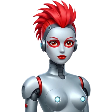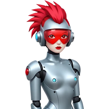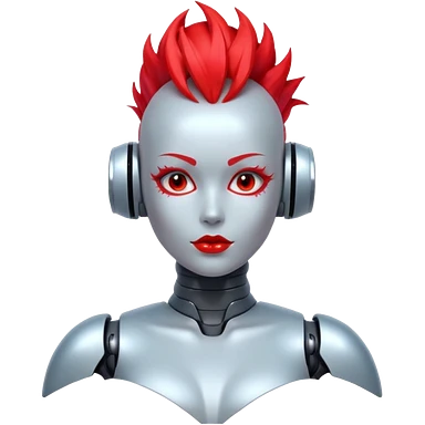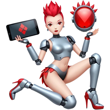 Sexy reflective glass face dronification robot girl with a red mohawk full body pinup pose emoji
