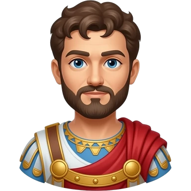 Julius Caesar with brown eyes, golden brown hair, red metallic tunic, white metallic toga emoji
