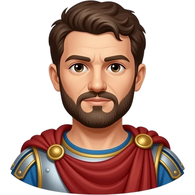 Julius Caesar with brown eyes, dark brown hair, red metallic tunic, white metallic toga emoji