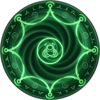 Curse of Lanka, a swirling vortex of dark green energy and magical runes, possessing a unit, mind control effect, shadowy spirits, mystical skill style. emoji