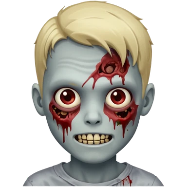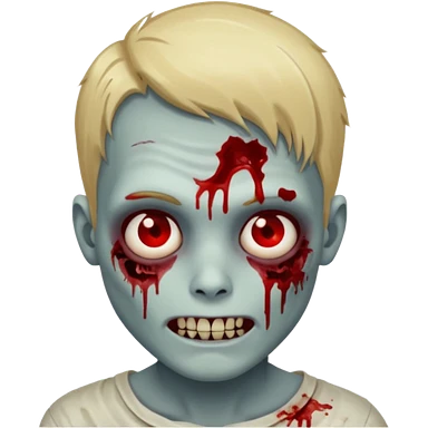зомби парень с русыми волосами, с белой кожей, с глазами без зрачков, с открытой окровавленной улыбкой emoji