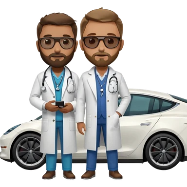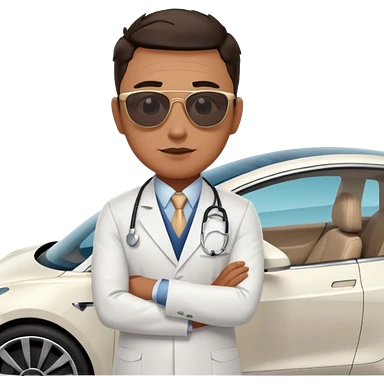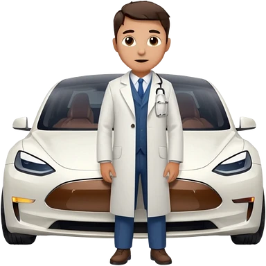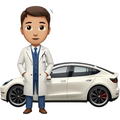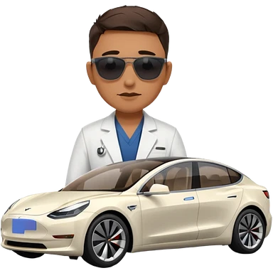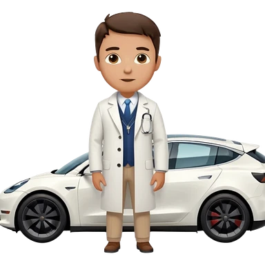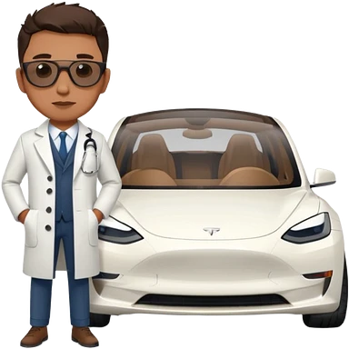 White tesla model 3 with a physician next to it emoji