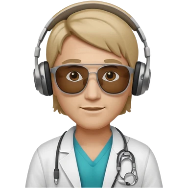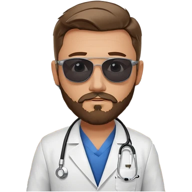 White tesla model 3 and one cool physician with dark blond hair, beard, stetoscope and dark sunglasses next to it emoji