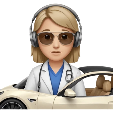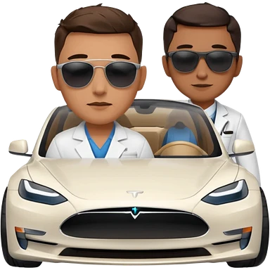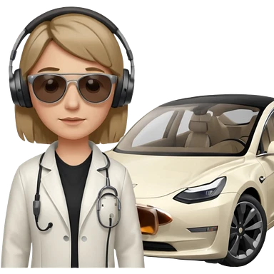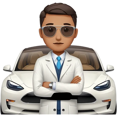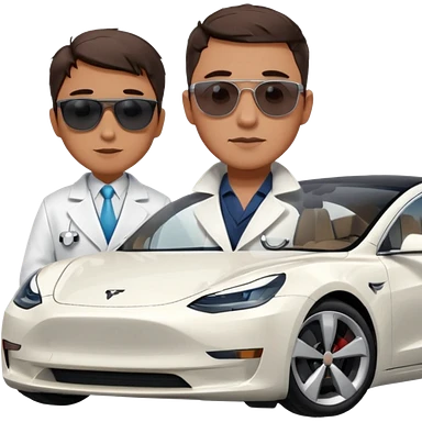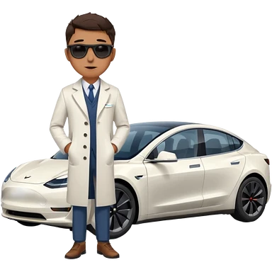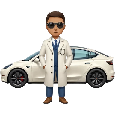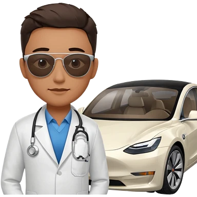White tesla model 3 with a physician with sunglasses next to it emoji