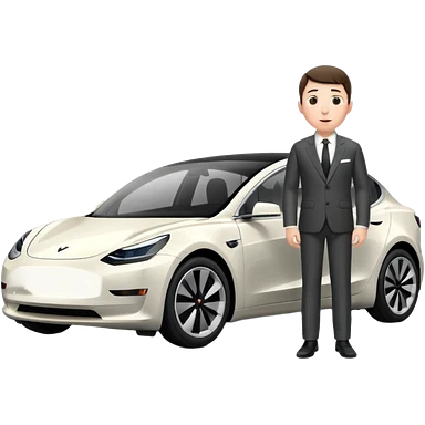 White tesla model 3 with a sleaky physician next to it emoji