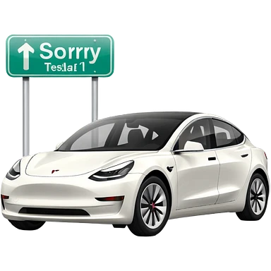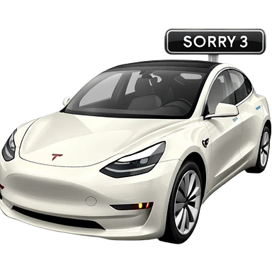 White tesla model 3 with the text «sorry I can park elsewhere» emoji