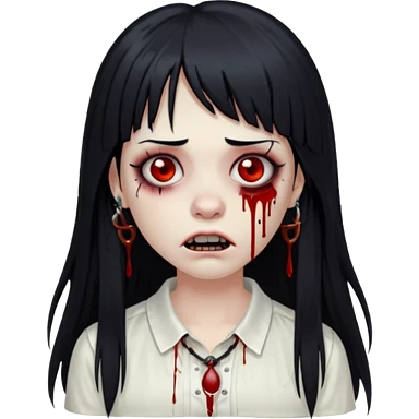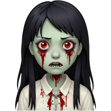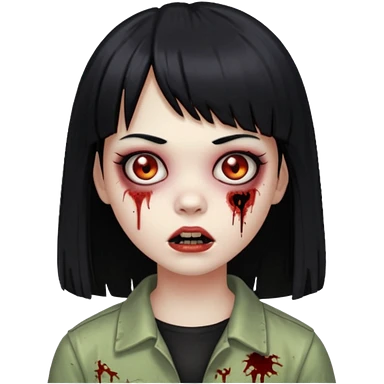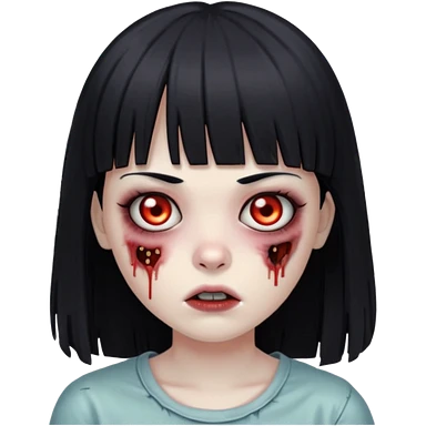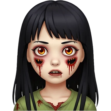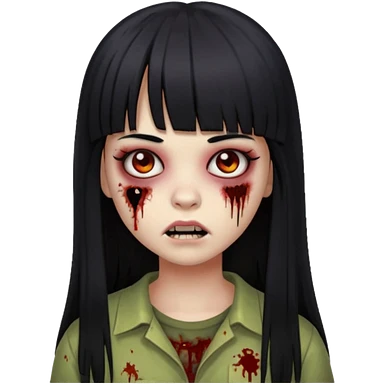 Faça uma menina de cabelo liso preto com franja zumbi cabelo longo 🧟♀️ faça ela assim emoji