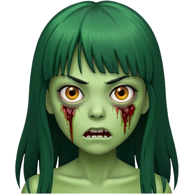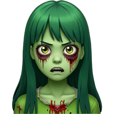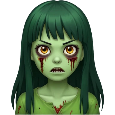 Faça uma menina de cabelo liso preto com franja zumbi cabelo longo 🧟♀️ faça ela assim faça ela verde com cara mais assustadora emoji