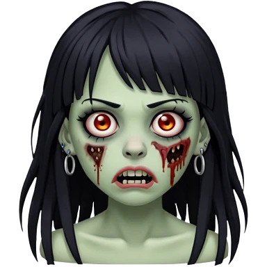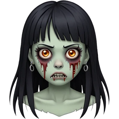 🧟♀️ faça igual esse emoji que coloquei só que com franja e piercing dos dois lado do nariz e no septo faça com cabelo longo preto e com a cara mais assustadora mais assustadora sem metade da bochecha emoji