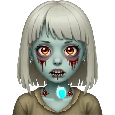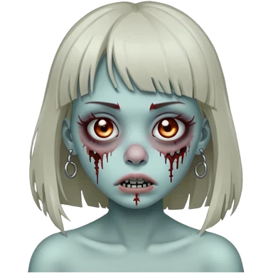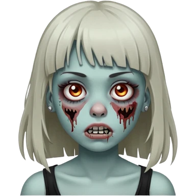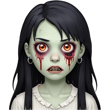 🧟♀️ faça igual esse emoji que coloquei só que com franja e piercing dos dois lado do nariz e no septo faça com cabelo longo preto e com a cara mais assustadora mais assustadora sem metade da bochecha cabelo mais longo e coloque com uma blusa branca emoji