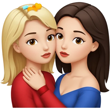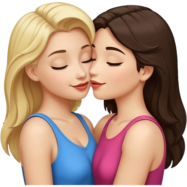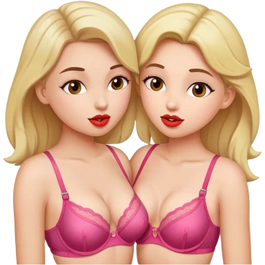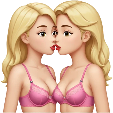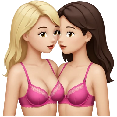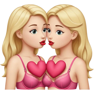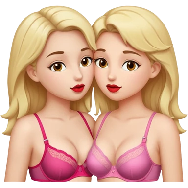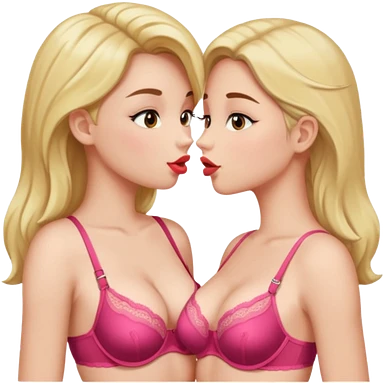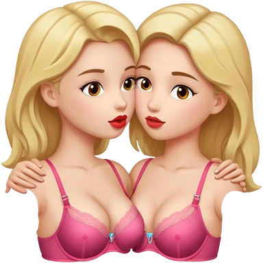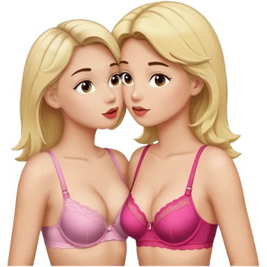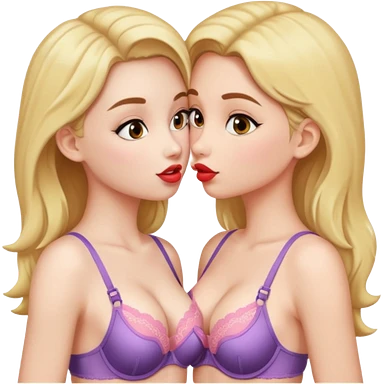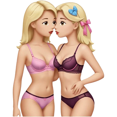 a blonde girl in her bra and a brunette in her underwear and they're both kissing emoji