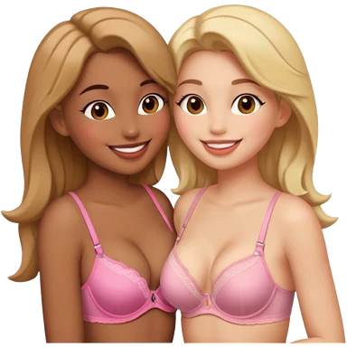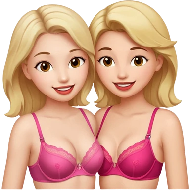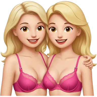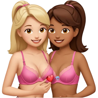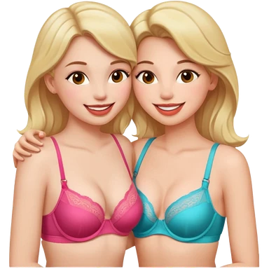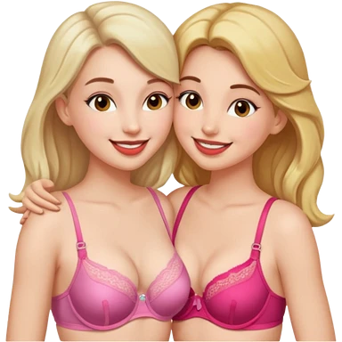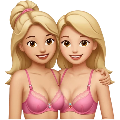 a blonde girl in her bra and a brunette in her bra and they're both making out emoji