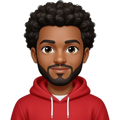 A boy with a Afro hair and has a Red hoodie with a beard emoji