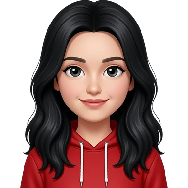 A person with black long hair and has a Red hoodie emoji