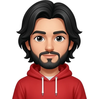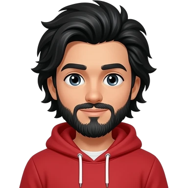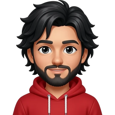 A boy with black long hair and has a Red hoodie with a beard emoji