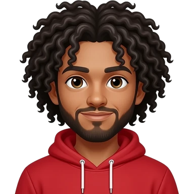 A boy with a super longAfro hair and has a Red hoodie with a beard emoji