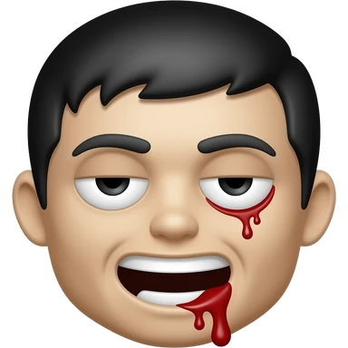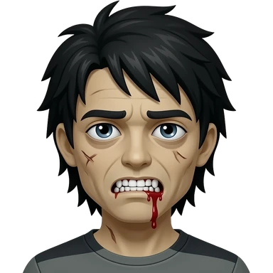 Zombie, Black Hair, white teeth with blood leaking out, minor scar under eye, drowsy eyes, emoji