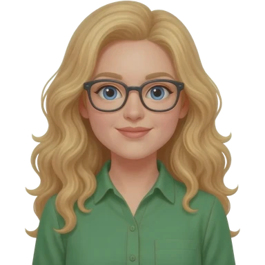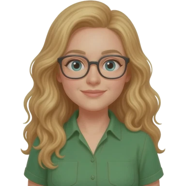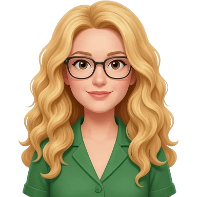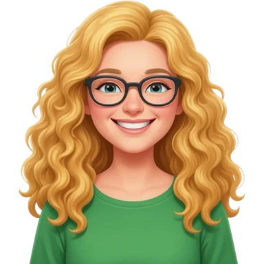 green shirt loce woman with long curly blonde hair an glasses emoji