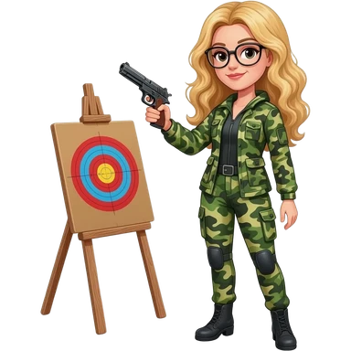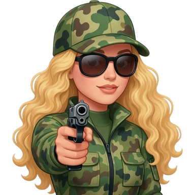Target practice Right to bear arms Green hunting woman with glasses and long blonde curly hair carrying a pistol emoji