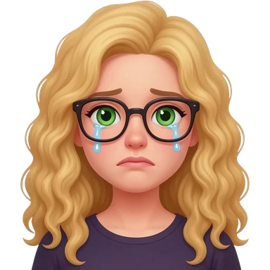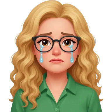 green shirt crying woman with long curly blonde hair an glasses emoji