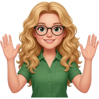 green shirt hands in the air woman with long curly blonde hair an glasses emoji
