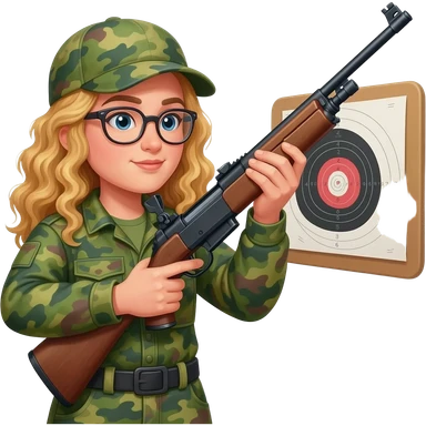 Target practice Green hunting woman with glasses and long blonde curly hair carrying a rifle emoji
