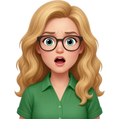 green shirt suprised woman with long curly blonde hair an glasses emoji