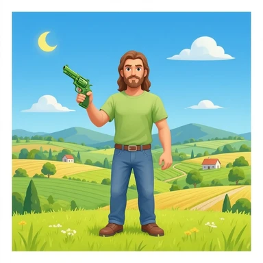 Right to bear arms Green hunting woman with glasses and long blonde curly hair carrying a pistol emoji