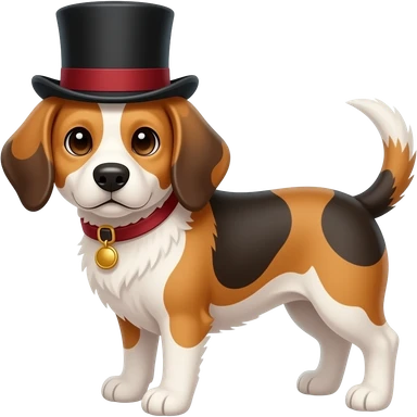 Calico dog with a top hat emoji