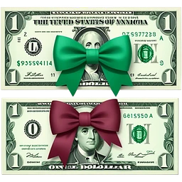 One Dollar with burgundy bow emoji