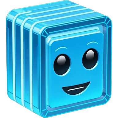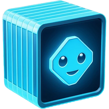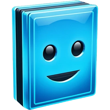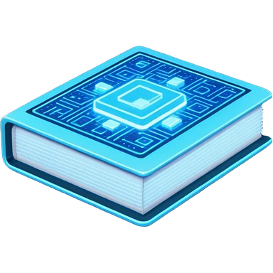 Pixel art emoji icon of a futuristic holographic book (help), neon blue sci-fi voxel style, cute tech aesthetic, centered, simple, high contrast, 3D shading, soft glow, transparent background, 100x100 px, game UI icon emoji
